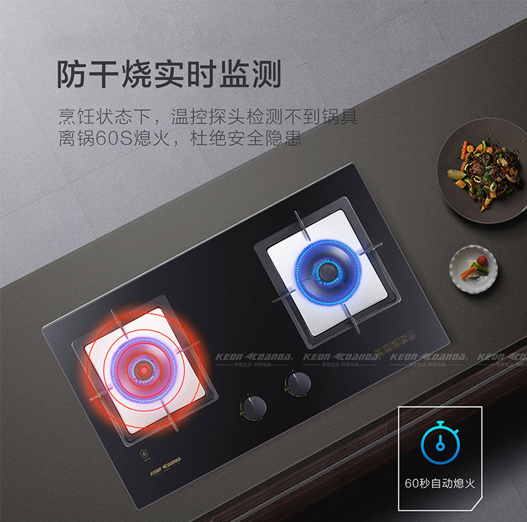 另外也無需擔心防干燒裝置會影響爆炒烹飪,集成在十大品牌、廚電行業十大品牌科恩KN610智能防干燒裝置設在左側爐頭,實現左邊蒸煮防干燒、右邊爆炒無限制的理想狀態,此設計可以說是將燃氣灶做到了極致!