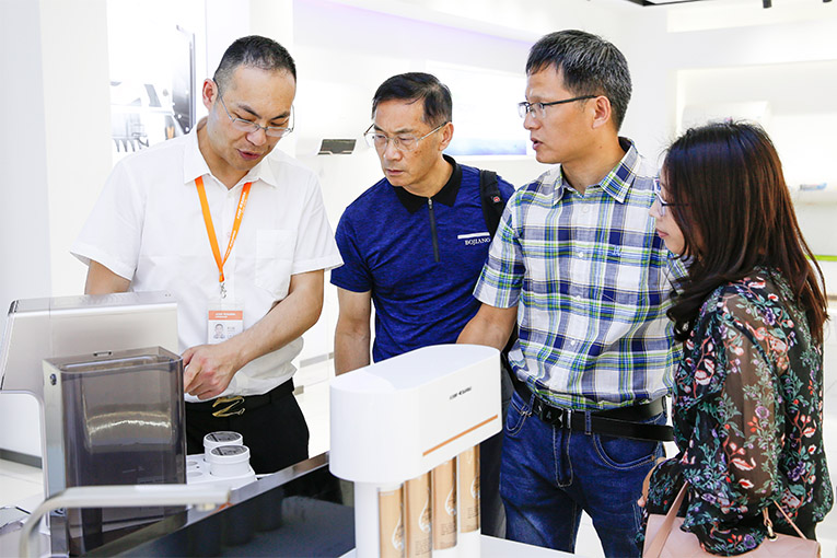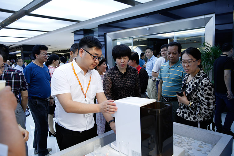 交流會上,董事長俞鋒講述其科恩電器十余年的發(fā)展征程, 磨礪出尖峰,科恩快速被市場廣泛接納、被消費(fèi)者所認(rèn)可,良好的品牌形象和知名度、獨(dú)特的產(chǎn)品品質(zhì)、合理的價格和服務(wù)讓科恩電器漸漸走向高端。隨后,俞董事長重點(diǎn)介紹并演示了科恩為響應(yīng)“綠色家電”消費(fèi),重點(diǎn)研發(fā)的環(huán)?!昂诳萍肌薄?strong>科恩移動水吧。健康飲水倡導(dǎo)者,全品類廚電質(zhì)造專家科恩電器憑借移動水吧榮獲“工業(yè)設(shè)計大賽產(chǎn)品設(shè)計優(yōu)秀獎”,這一殊榮充分展現(xiàn)了科恩電器的工業(yè)設(shè)計實(shí)力,也是行業(yè)對科恩電器在工業(yè)設(shè)計領(lǐng)域成績的充分認(rèn)可。