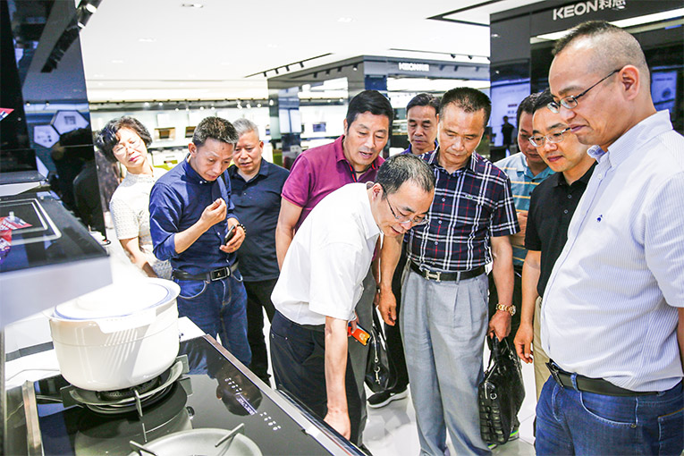 企業(yè)代表團(tuán)首先參觀集成灶十大品牌、廚電行業(yè)十大品牌浙江科恩電器的智能現(xiàn)代化廠區(qū),氣勢恢弘的現(xiàn)代化行政辦公大樓、CNAS國家認(rèn)可實(shí)驗(yàn)室、高科技智能廚房體驗(yàn)展館等,一流的設(shè)備、一流的工藝、苛刻的質(zhì)量檢驗(yàn),高效的生產(chǎn)效率,嚴(yán)謹(jǐn)?shù)臋z測程序及優(yōu)異產(chǎn)品品質(zhì)都讓百余位企業(yè)家贊嘆不已!