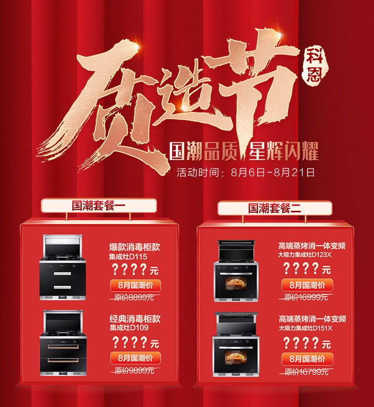 集成灶十大品牌、廚電行業(yè)十大品牌科恩八月質(zhì)造節(jié)大型全國促銷活動(dòng)強(qiáng)勢來襲,國潮品質(zhì),星輝閃耀,絕對(duì)給你想不到的洪荒之“利”!