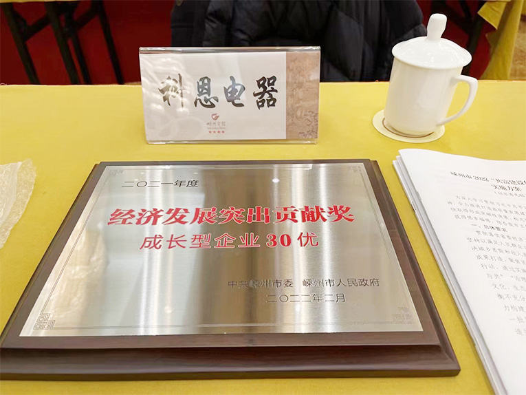 浙江科恩電器有限公司受邀出席會議,并斬獲嵊州市2021年度“經(jīng)濟發(fā)展突出貢獻獎——成長型企業(yè)30優(yōu)”獎項,虎年伊始,“虎”力全開!此項重磅大獎助力科恩實現(xiàn)虎年開門紅,奏響2022開年最強音。