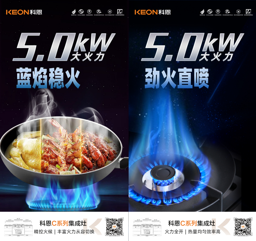 科恩C系列集成灶,5.0kW黃金大火力,輕松實(shí)現(xiàn)爆炒自由,縱情沉浸美好烹飪新體驗(yàn)!