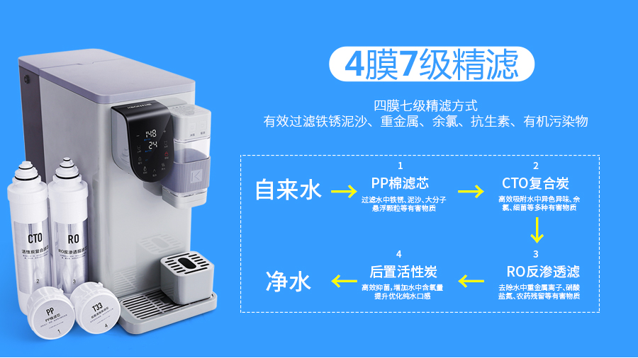 那么,怎樣才能最大限度的減少水中的雜質(zhì)及污染物呢?安裝一臺優(yōu)質(zhì)的凈水器勢在必行!而且一定要裝有RO反滲透過濾裝置,過濾精度高,去除有機污染物、重金屬都不在話下,不僅能讓污染的水得到有效的過濾處理,而且還不用改線改管道,就能快速便捷的飲用干凈健康的水!