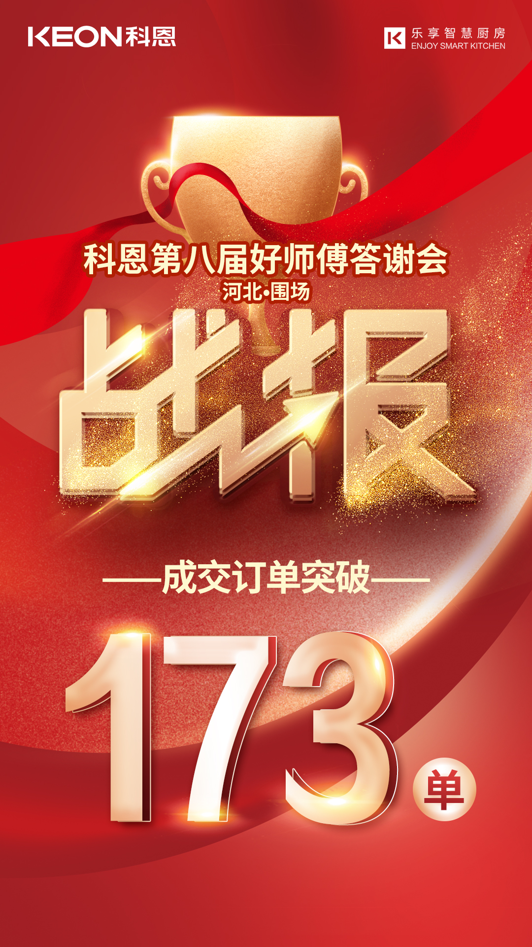 411日晚,科恩河北圍場專賣店科恩電器第八屆好師傅答謝會在中天宴會廳召開,以173單的好成績圓滿落幕。