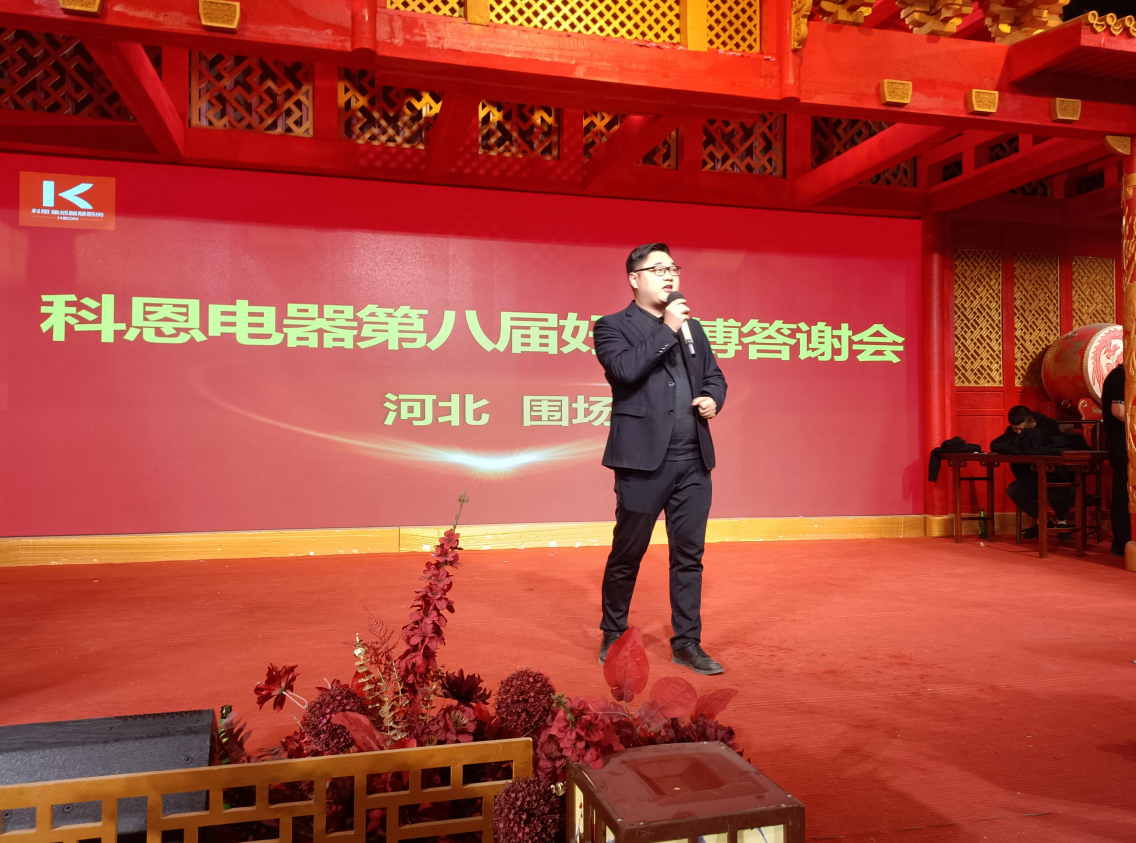 本次答謝會邀請到了圍場當地的三工師傅,隨著賓客滿座,答謝會盛宴正式拉開帷幕。科恩北部市場總監陳燊良致以開幕詞,他表示,科恩圍場專賣店從開業到現在,離不開每一位三工師傅的支持與信任,正是有他們的信賴與支持,才科恩圍場專賣店才更快速的站穩市場。
