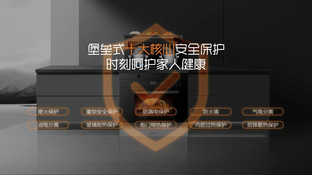 熄火保護、童鎖安全保護、防漏電保護、防火墻、氣電分離、油電分離、玻璃耐熱保護、柜門隔熱保護、內(nèi)腔過熱保護 、后排散熱保護。廚房安全無小事,從每個烹飪細節(jié)做起,保護廚房烹飪安全!