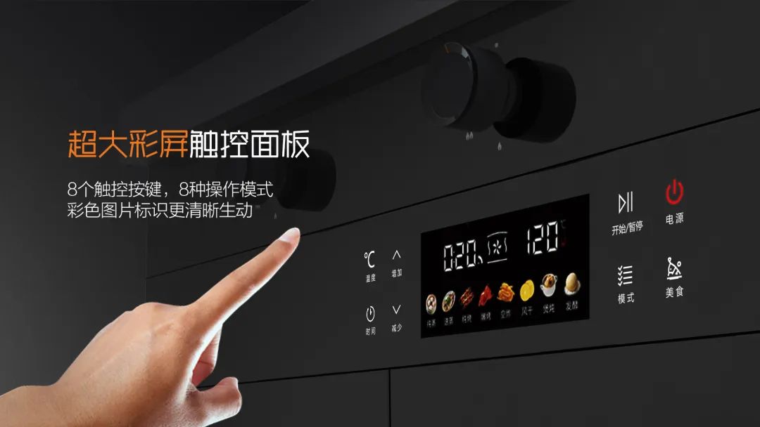 八大操控模式超大彩屏觸控面板,8個觸控按鍵,8種操作模式,彩色圖片標識更清晰生動。