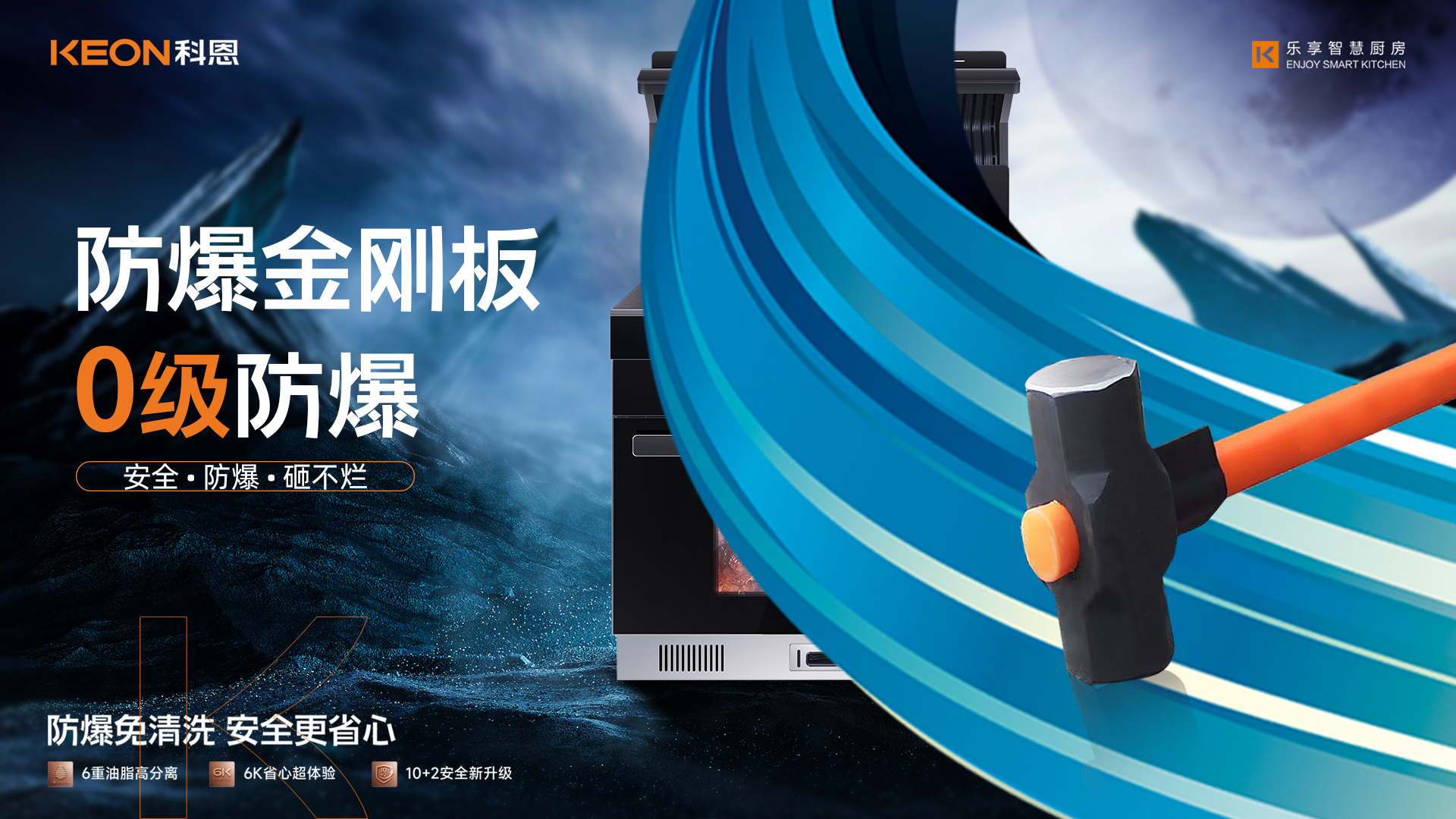 在抗沖擊方面,防爆金剛板更是能抗住工地大鐵錘的暴擊,真正做到0級防爆高硬度,更堅固,更安全!如此有效杜絕了廚房安全事故。