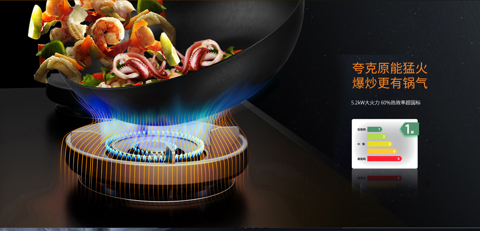 科恩防爆免清洗集成灶采用夸克能原猛火,爆炒更有鍋氣。G系列標配5.2KW大火力,更適宜爆炒,更符合中國人烹飪需求。