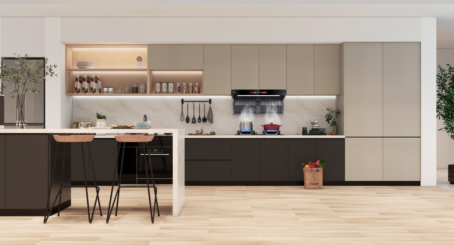 現(xiàn)在人們對(duì)于廚房的裝修也多偏向于開放式或半開放式空間——這意味著,效率不再是廚房的唯一訴求,廚房從高效的工作間逐漸演變成社交的場所。