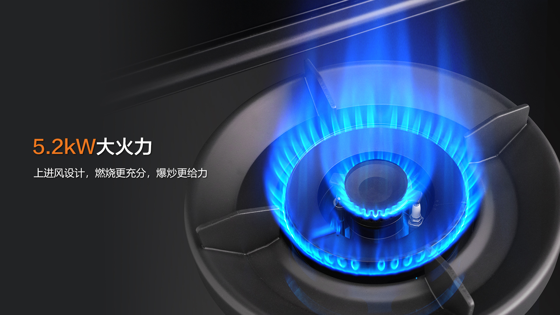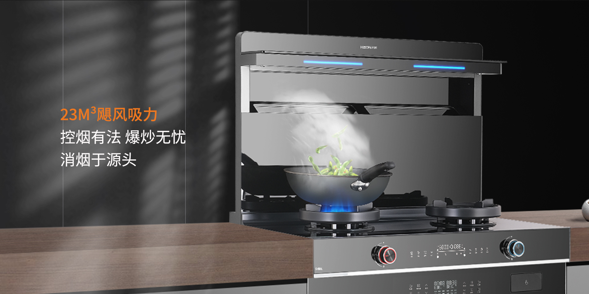 科恩S系列全系搭載5.2Kw大火力,可媲美飯店后廚,讓你在家就能烹飪出美味佳肴。