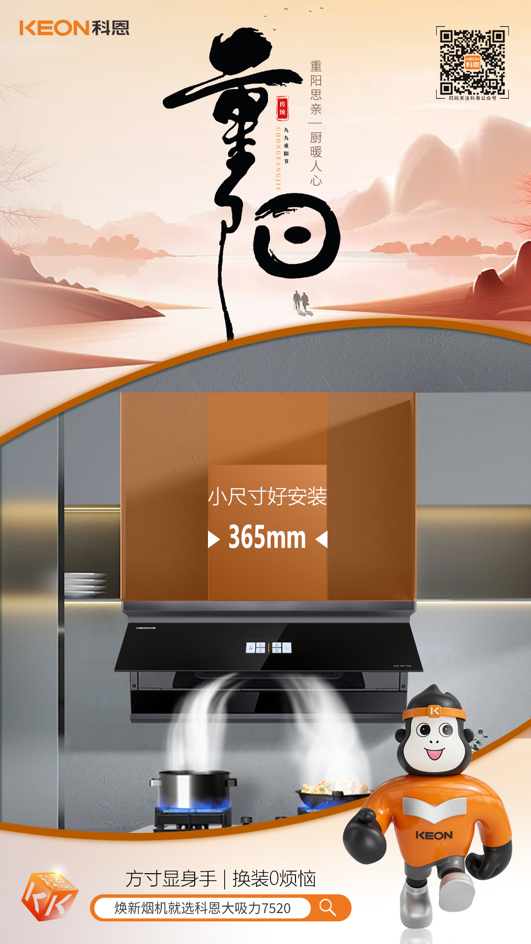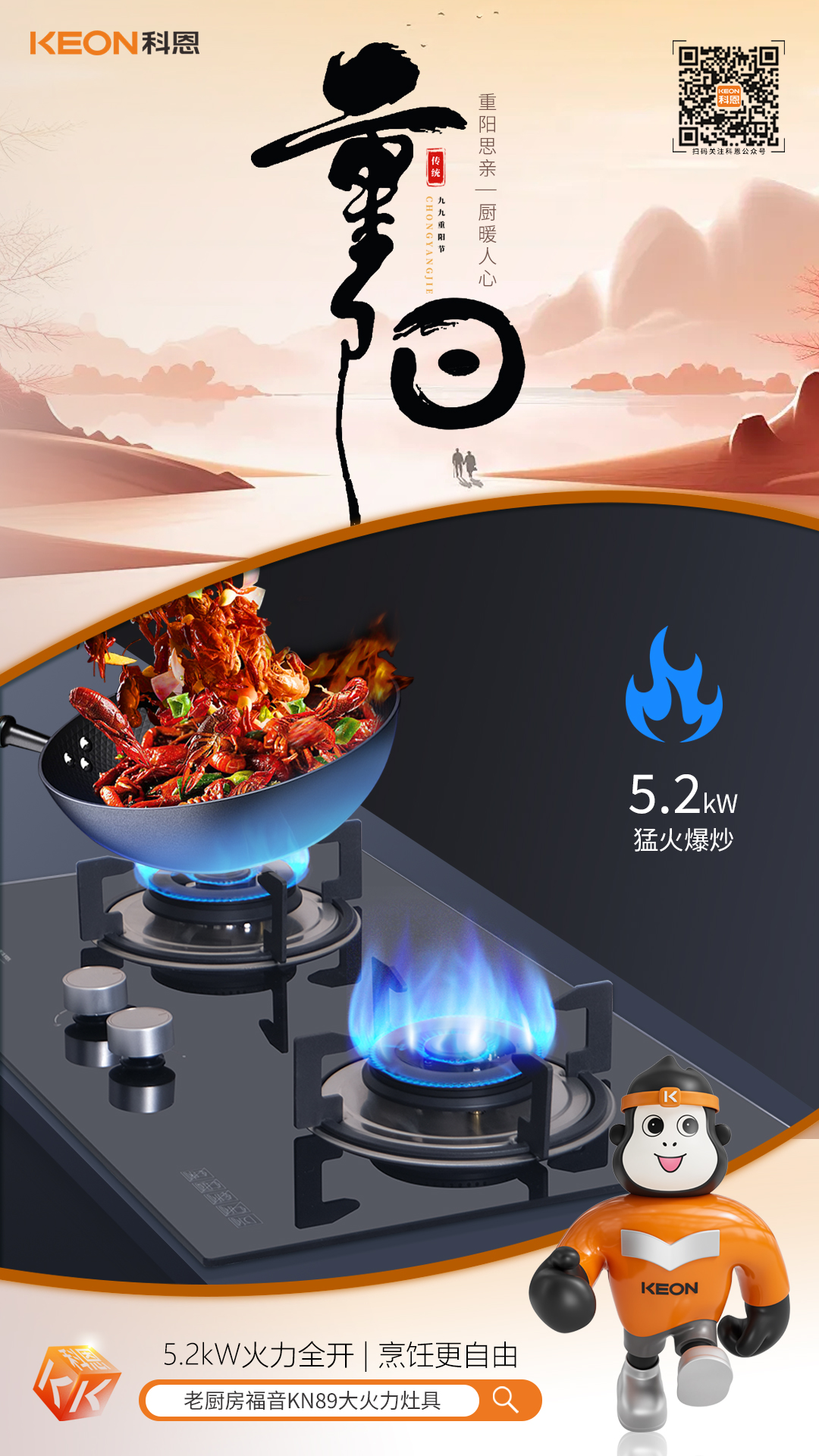 重陽又至,秋意漸濃。登高祈福,賞菊飲酒,孝心綿長,廚房煙火,承載三代溫情。一套省心廚電,讓團圓滋味更圓滿,把對長輩的愛,藏進每一頓餐食里。科恩廚電助你打造,一個舒適、便捷、安全的廚房環(huán)境,讓孝心在廚房中綻放。