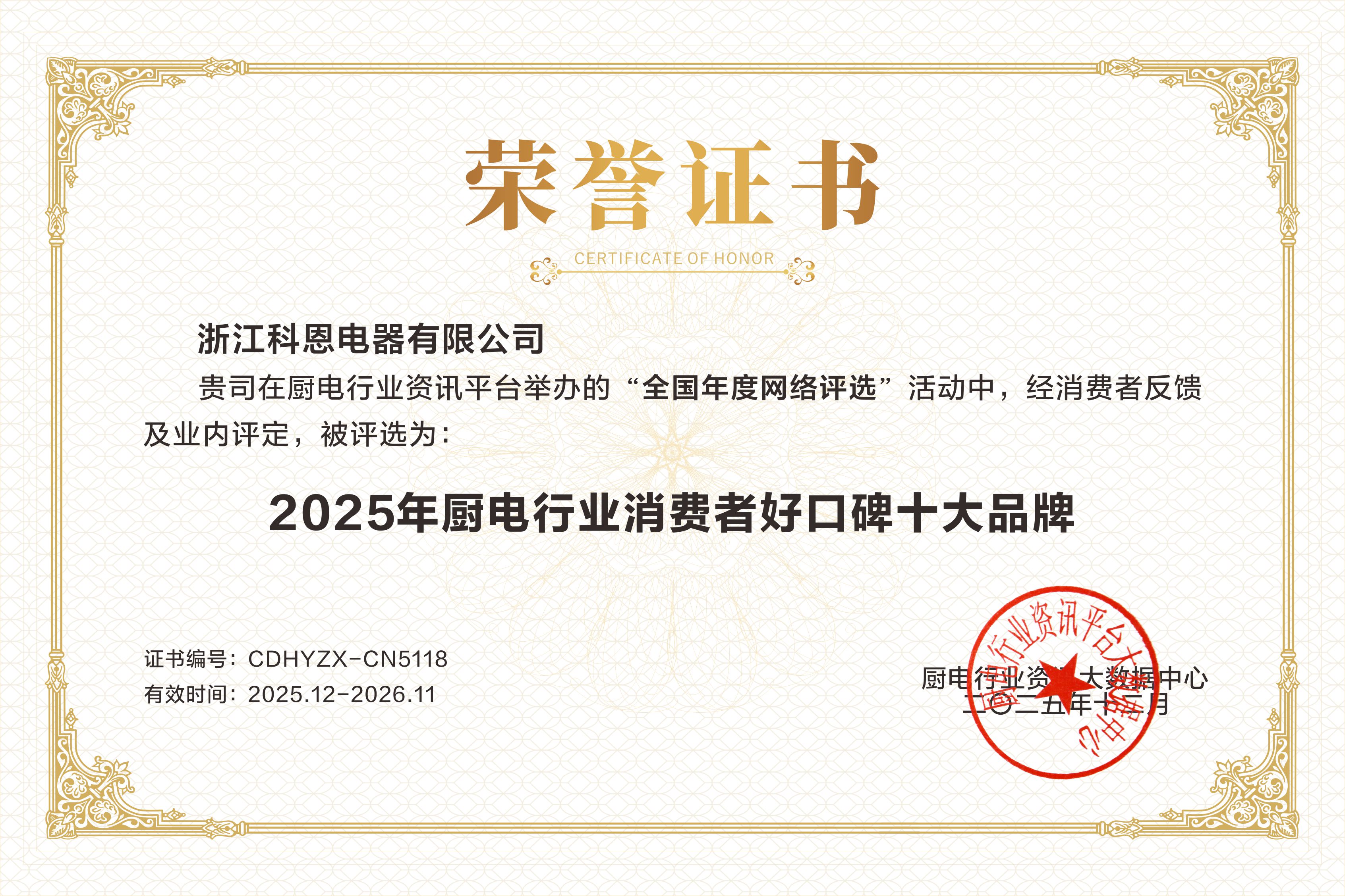 每一次獲獎(jiǎng),都是對過去的總結(jié),更是對未來的承諾。科恩電器感謝每一位用戶的信賴與選擇,感恩行業(yè)伙伴的認(rèn)可與同行。站在新的高度,科恩將承載這份榮耀與期待,繼續(xù)秉持匠心與創(chuàng)新精神,不僅致力于提升中國家庭的廚房生活品質(zhì),更愿與行業(yè)一同成長,共同推動(dòng)廚電產(chǎn)業(yè)邁向更高水平的發(fā)展征程。