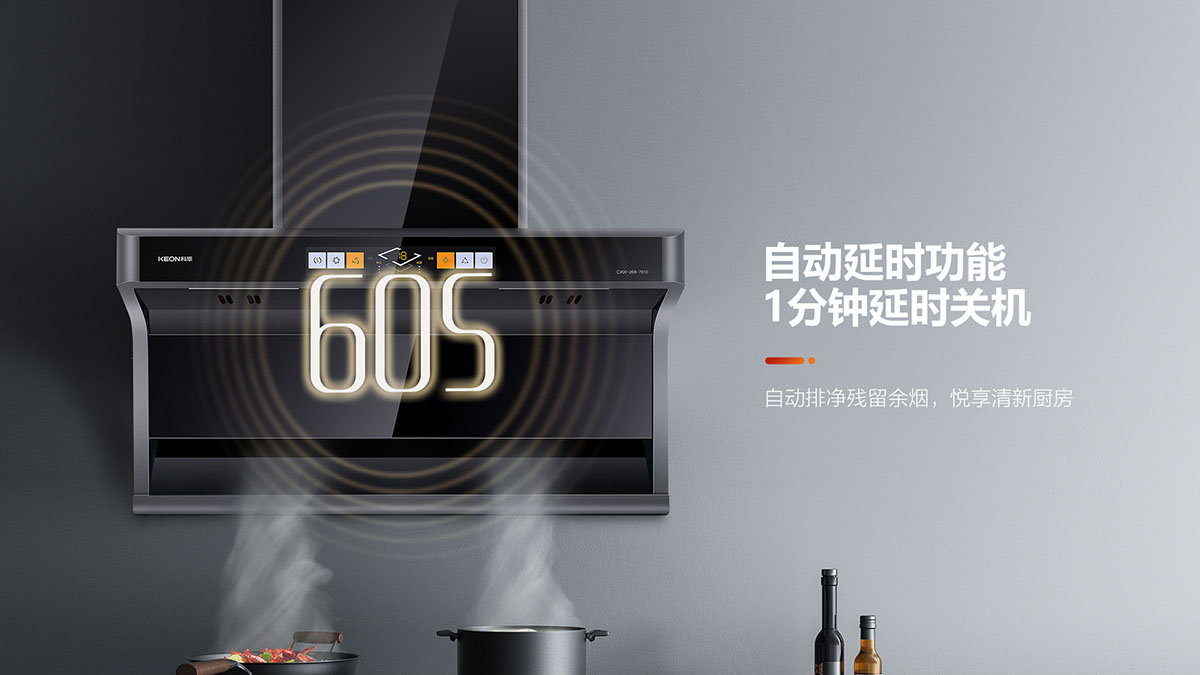 自動延時功能,1分鐘延時關機,自動排凈殘留余煙,悅享清新廚房
